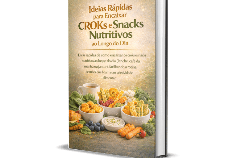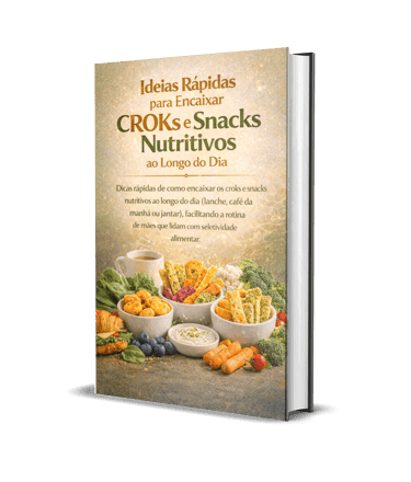 Ideias rápidas de como encaixar os croks e snacks nutritivos ao longo do dia (lanche, café da manhã ou jantar), facilitando a rotina de mães que lidam com seletividade alimentar.