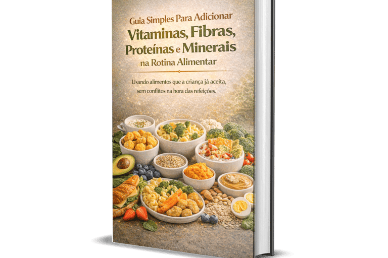 Um guia simples mostrando como adicionar vitaminas, fibras, proteínas e minerais na rotina alimentar usando alimentos que a criança já aceita, sem conflitos na hora das refeições.